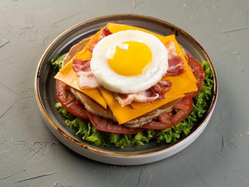Панкейк с куриной грудкой и мииксом соусов