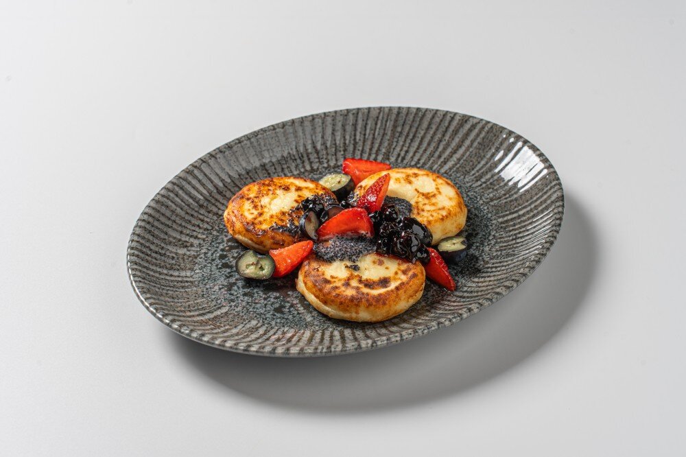 Сырники с муссом из белого шоколада и мака