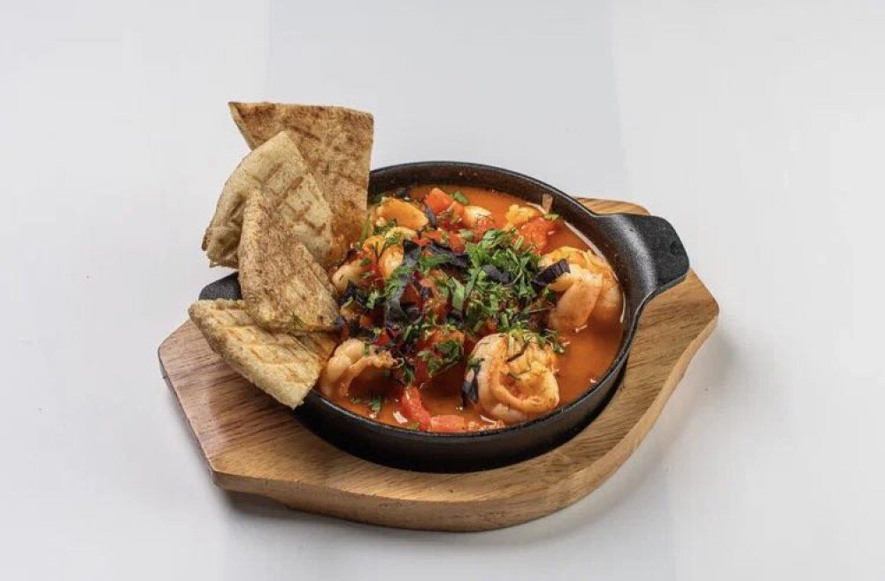 Креветки с томатами конкассе